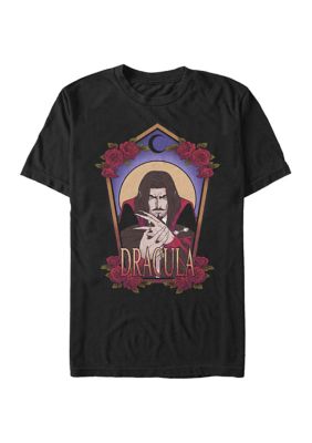 Dress in a style befitting a Count with an officially licensed Castlevania style! Celebrate your favorite anime-inspired Netflix series with a cool tee that shows off the vampire hunter Trevor Belmont, the magician Sypha Belnades, or Dracula's son Alucard! | Men's Castlevania Dracula Art Nouveau Graphic T-Shirt