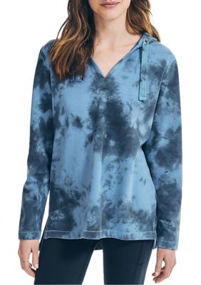 Designed in Nautica's cloud wash patterntheir take on the trendy tie-dye printthis stretch-knit pullover hoodie features a split neck and a side slit hem for easy layering. | Nautica Women's Cloud Wash Split Neck Pullover Hoodie