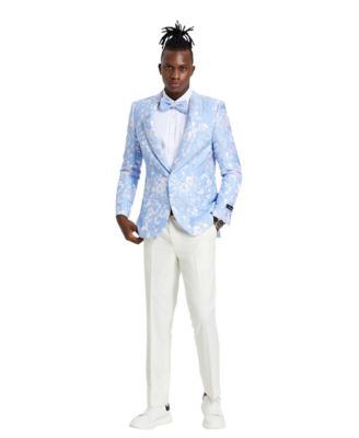 Sky and Silver Shawl Collar Floral Mens-Jacket | Tazzio Shawl Collar Floral Mens-Jacket