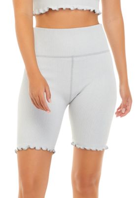 A ruffled lettuce hemline adds feminine charm to these sporty bike shorts from Body & Sol. | Zelos Women's Seamless Ruffle Bike Shorts, Grey, X-Large